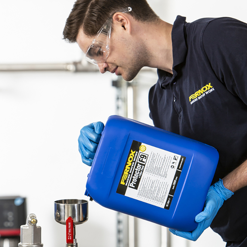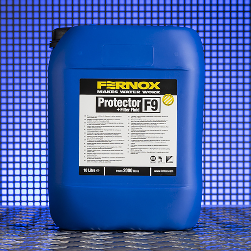 Protector+ Filter Fluid F9 este un inhibitor îmbunătățit care include o tehnologie de dispersare care oferă protecție excelentă împotriva coroziunii, inhibarea formării de calcar și controlul pH-ului în sistemele HVAC și în sistemele comerciale ușoare de încălzire și răcire. Conceput pentru utilizarea cu unul dintre filtrele de sistem integrate din gama Fernox comercială sau cu altele similare, acest pachet de inhibitori unici include un agent de dispersie activ, care ajută la colectarea în siguranță a reziduurilor de coroziune, a calcarului și a altor contaminanți de sistem prin intermediul unui filtru. Această formulă inovatoare prelungește durata de viață a sistemului și menține eficiența optimă. Protector+ Filter Fluid F9 este compatibil cu toate celelalte produse comerciale Fernox și este potrivit pentru utilizarea împreună cu toate materialele și metalele utilizate în mod uzual în sistemele de încălzire și răcire, inclusiv oțel și aluminiu. Un produs de 10 litri tratează un sistem de până la 2000 de litri la o putere a dozei de 0,5%.